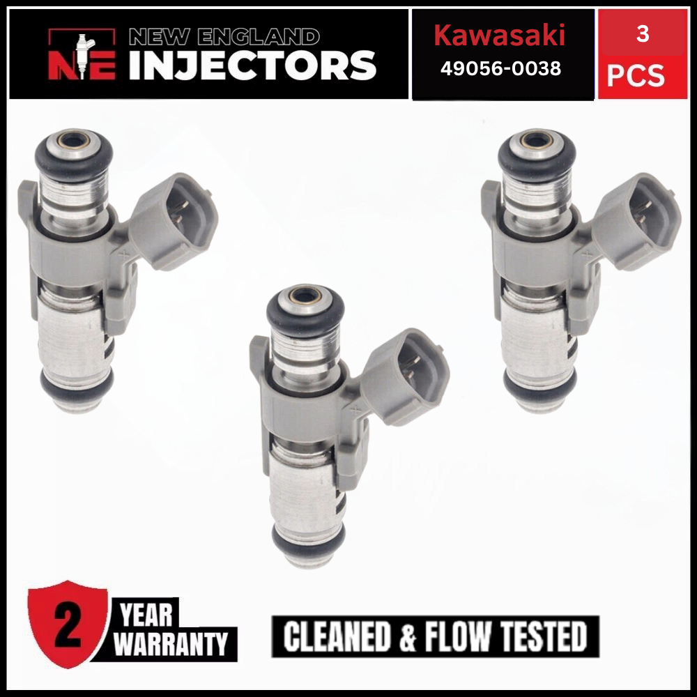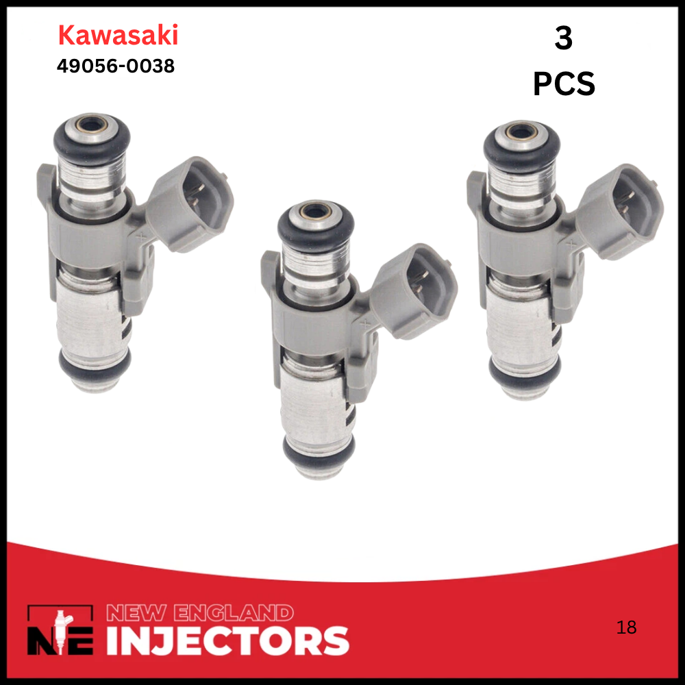 Remanufactured Kawasaki 49056-0038 Set of 3 fuel Injectors for 2015-2022 Kawasaki Mule PROFXT. Professionally rebuilt to OEM specs using only genuine OEM injectors. Includes fast shipping and a 2-year warranty.