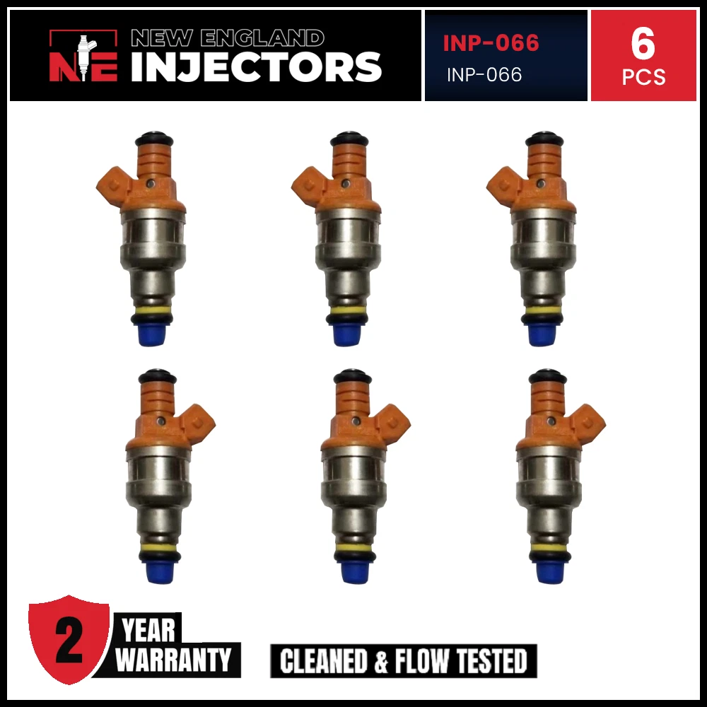 Remanufactured Nikki INP-066 fuel Injector set of 6 for 1987-2000 Chrysler LeBaron, Dodge Spirit, Dynasty, Daytona, Shadow, Caravan, Grand Caravan; Plymouth Acclaim, Sundance, Voyager, Grand Voyager. Professionally rebuilt to OEM specs using only genuine OEM injectors. Includes fast shipping and a 2-year warranty.