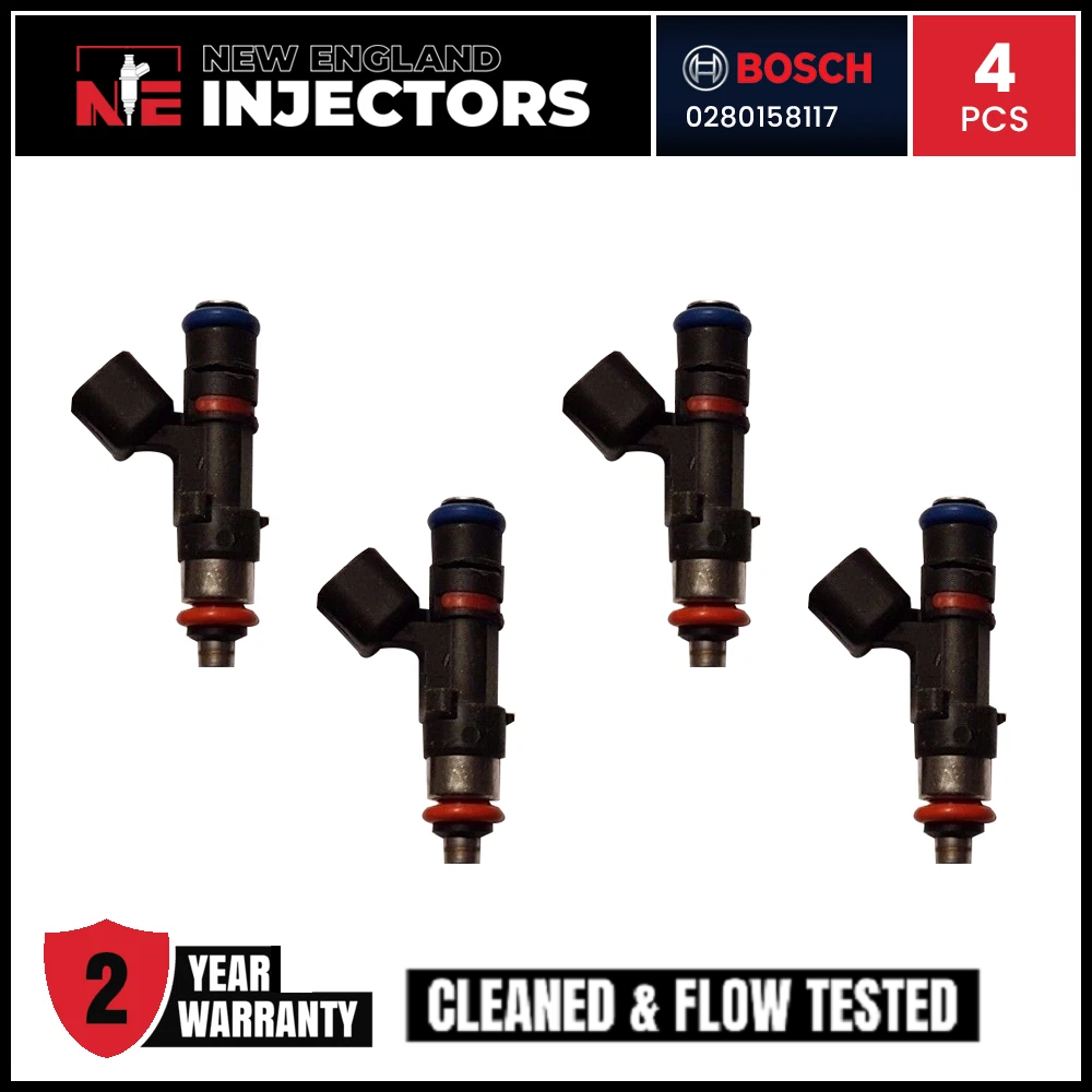 Remanufactured Bosch 0280158117 Set of 4 fuel Injectors for Honda, Ford, Dodge. Professionally rebuilt to OEM specs using only genuine OEM injectors. Includes fast shipping and a 2-year warranty.