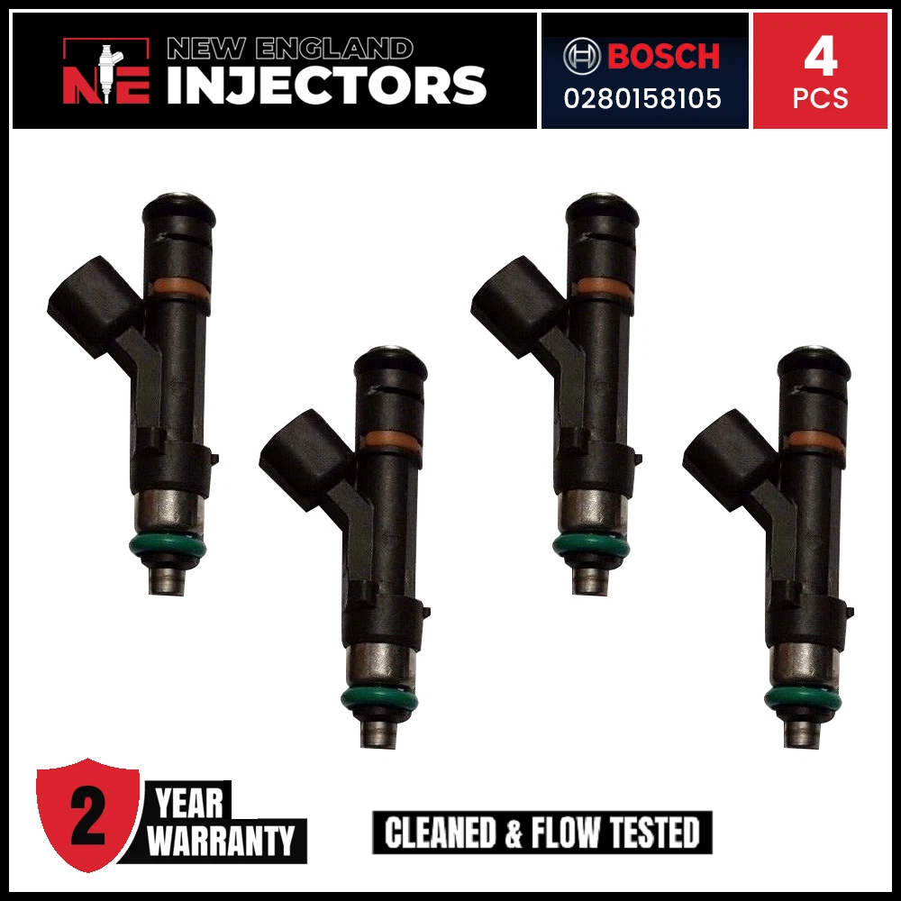 Remanufactured Bosch 0280158105 Fuel Injectors set (4) for 2006-2010 Ford • Mercury • Mazda Focus • Ranger • Milan • Escape • Fusion • Tribute • Mariner Professionally rebuilt to OEM specs using only genuine OEM injectors. Includes fast shipping and a 2-year warranty.