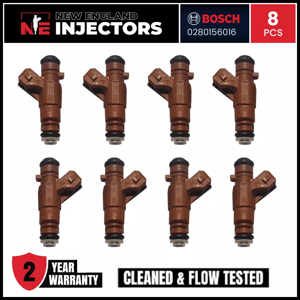 Remanufactured Bosch 0280156016 Fuel Injectors set (8) for 2000–2008 Mercedes-Benz G500 ML500 R500 CL500 CLK500 E500 S500 SL500 CLK430 E430 ML430. Professionally rebuilt to OEM specs using only genuine OEM injectors. Includes fast shipping and a 2-year warranty.