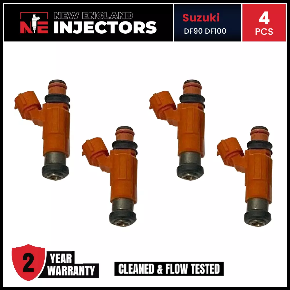 Remanufactured Suzuki 68V-8A360-00-00 Set of 4 fuel Injectors for Suzuki DF90, DF100, DF115, DF140. Professionally rebuilt to OEM specs using only genuine OEM injectors. Includes fast shipping and a 2-year warranty.