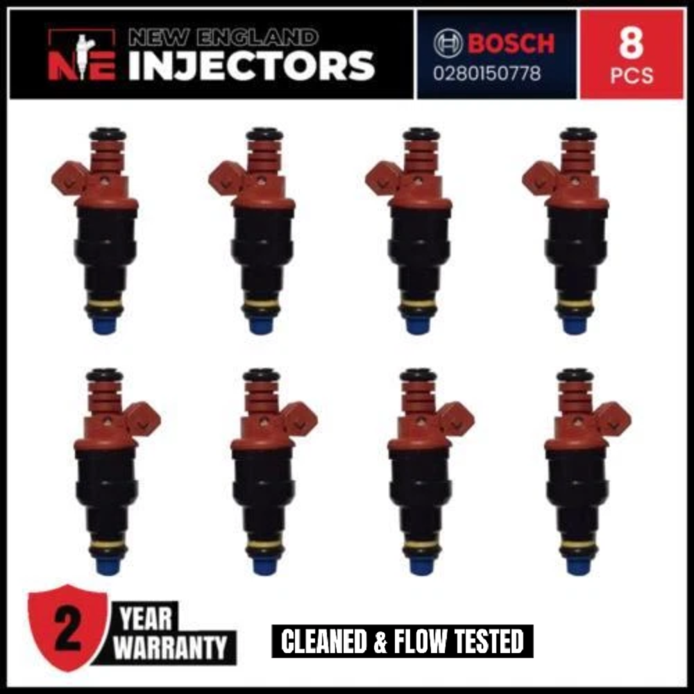 Remanufactured Bosch 0280150778 fuel Injector set of 8 for 1993-1998 BMW 540i, 740i, 740iL, 840Ci, 530i. Professionally rebuilt to OEM specs using only genuine OEM injectors. Includes fast shipping and a 2-year warranty.