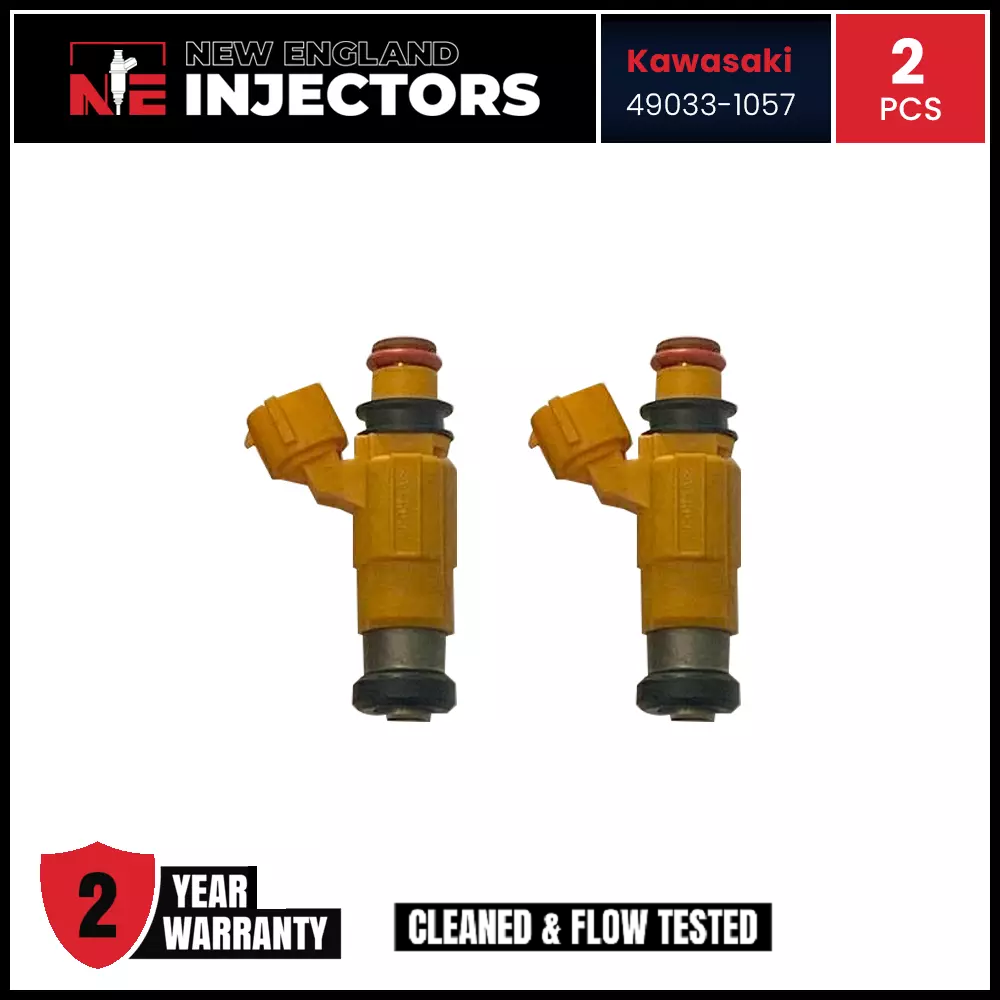 Remanufactured Kawasaki 49033-1057 Set of 2 fuel Injectors for 2001–2008 Kawasaki Vulcan 1500. Professionally rebuilt to OEM specs using only genuine OEM injectors. Includes fast shipping and a 2-year warranty.