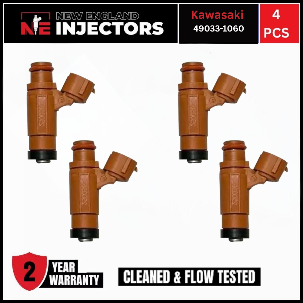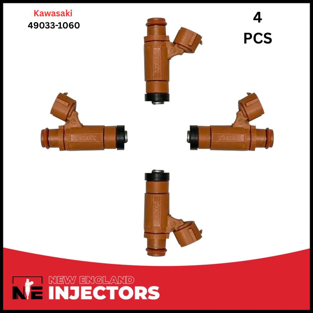 Remanufactured Kawasaki 49033-1060 Fuel Injectors set of 4 for 2008-2014 Kawasaki Teryx 750, Brute Force 750, Professionally rebuilt to OEM specs using only genuine OEM injectors. Includes fast shipping and a 2-year warranty.