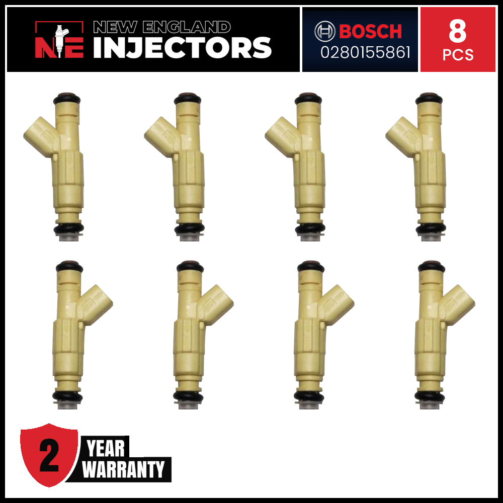 This product comprises of a set of 8 Bosch 0280155861 fuel injectors designed to fit the aforementioned vehicles.