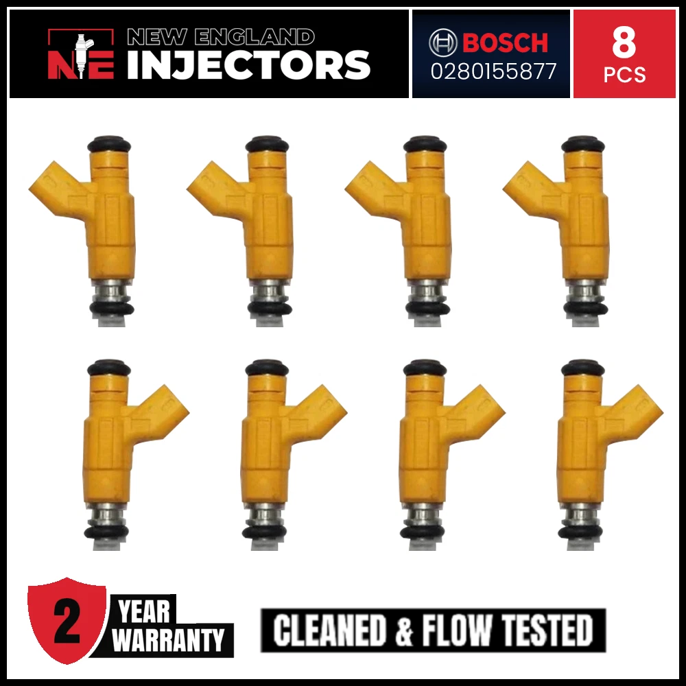 Remanufactured Bosch 0280155877 Set of 8 Fuel Injectors for 1999 Ford Taurus. Professionally rebuilt to OEM specs using only genuine OEM injectors. Includes fast shipping and a 2-year warranty.