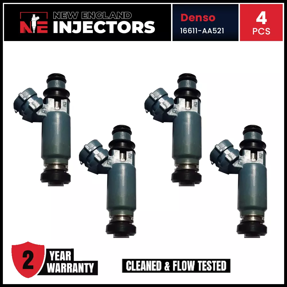 Remanufactured Denso 16611-AA521 Fuel Injectors set (4) for 2002–2005 Subaru Impreza WRX. Professionally rebuilt to OEM specs using only genuine OEM injectors. Includes fast shipping and a 2-year warranty.