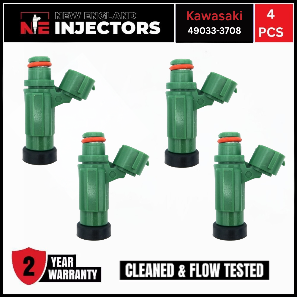 Remanufactured Kawasaki 49033-3708 Fuel Injectors set (4) for 2007–2010 Jet Ski Ultra 250X, Jet Ski Ultra 260LX, and Jet Ski Ultra 260X. Professionally rebuilt to OEM specs using only genuine OEM injectors. Includes fast shipping and a 2-year warranty.
