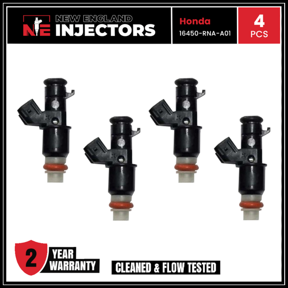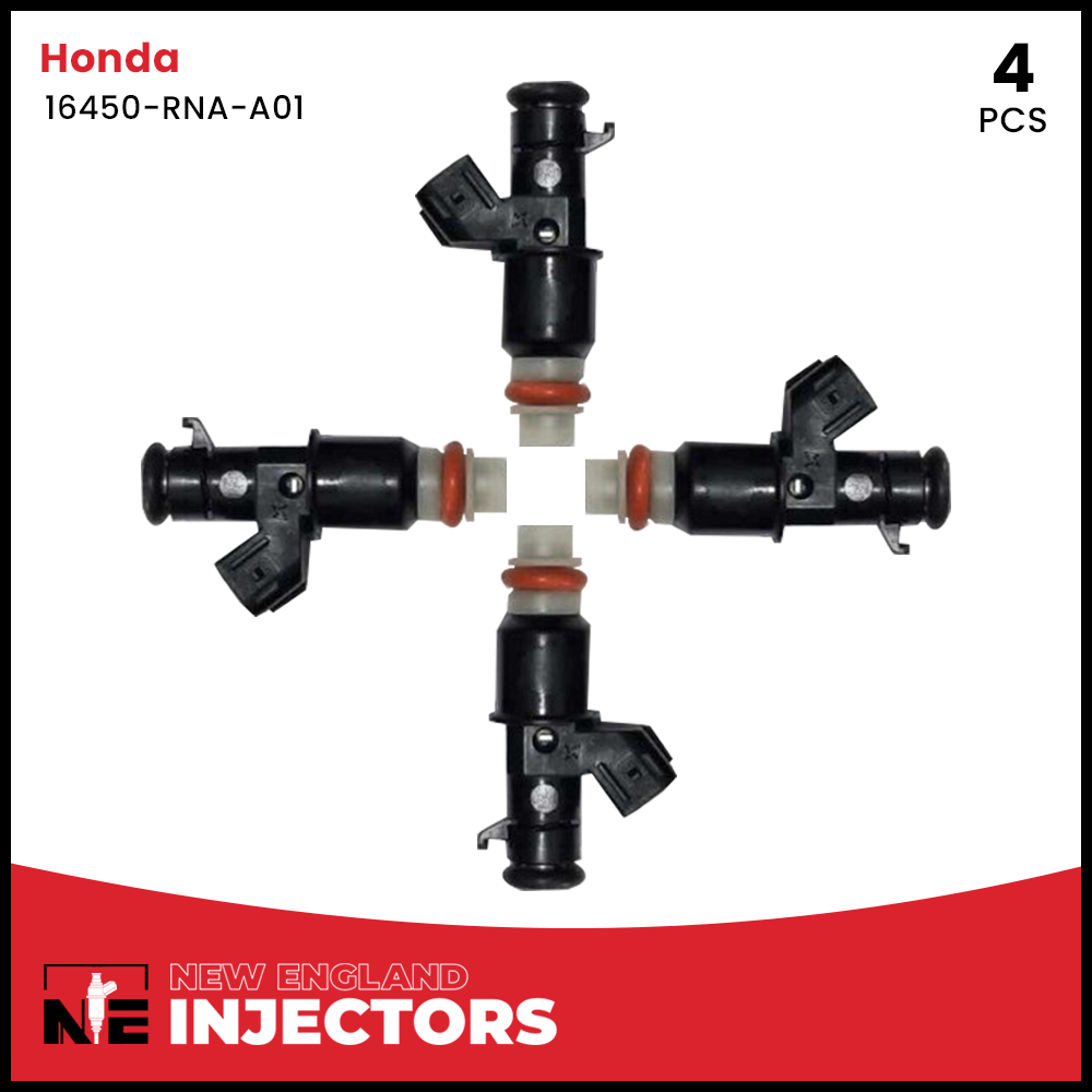 Remanufactured Keihin 16450-RNA-A01 Set of 4 fuel Injectors for 2005-2015 Honda Civic, Pilot, Odyssey, Ridgeline, Fit, Accord; Acura TL, MDX; Saturn Vue. Professionally rebuilt to OEM specs using only genuine OEM injectors. Includes fast shipping and a 2-year warranty.