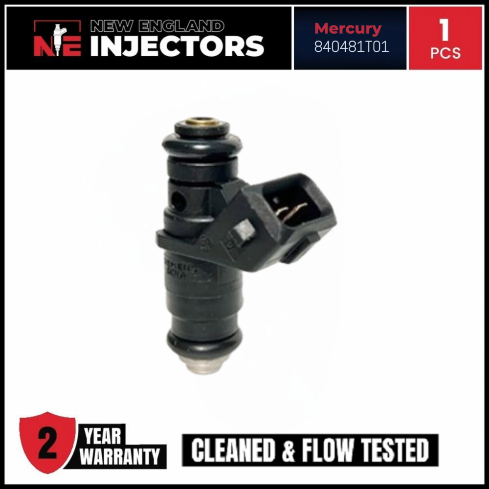 Remanufactured Mercury 840481T01 single Fuel Injector for 2000–2014 Mercury Marine V6 2-Stroke 150HP. Professionally rebuilt to OEM specs using only genuine OEM injectors. Includes fast shipping and a 2-year warranty.