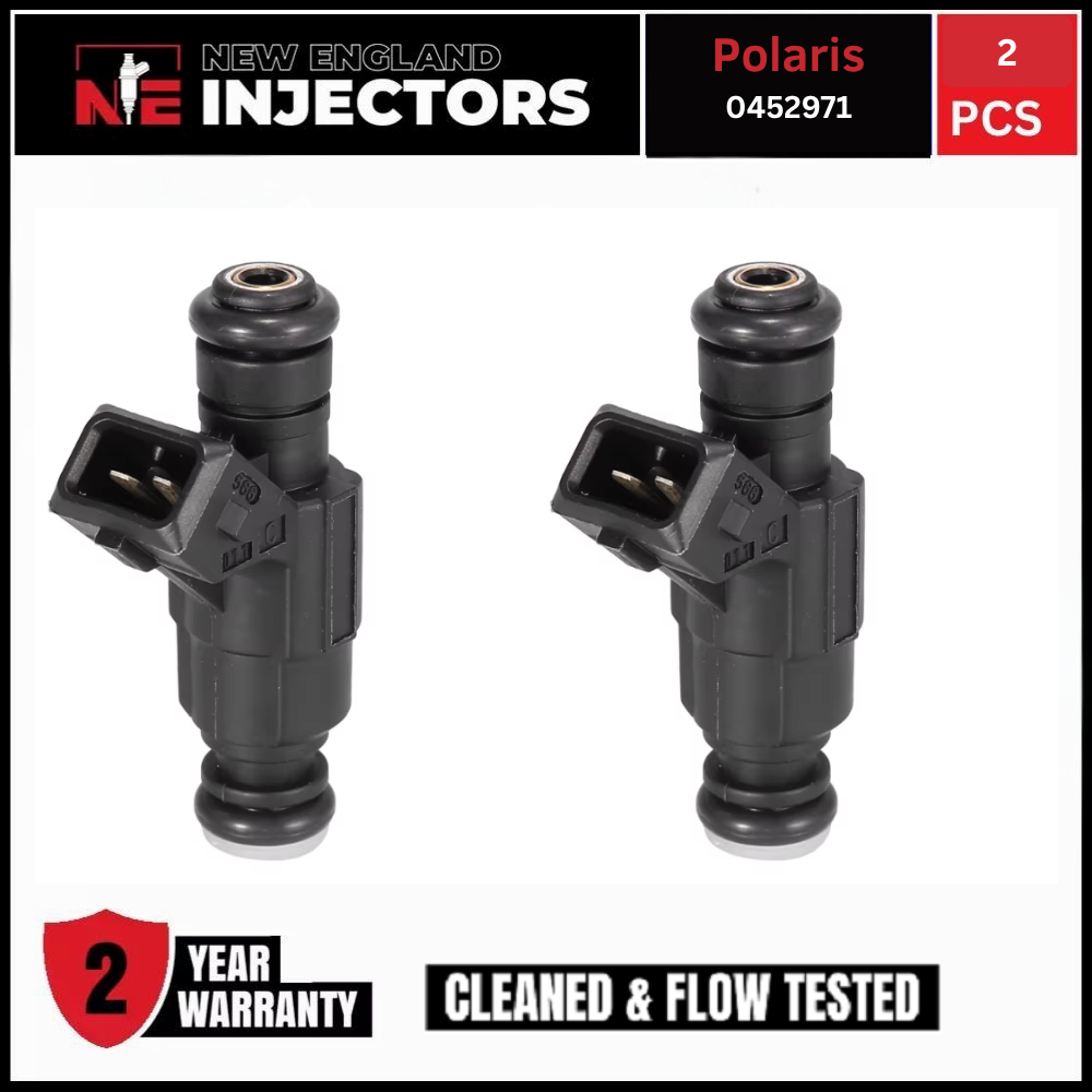 Remanufactured Polaris 0452971 Fuel Injectors set (2) for 2006-2014 Polaris FS/FST Classic, FS/FST Touring, FST Switchback, FS/FST IQ Touring, FST IQ Cruiser, FST IQ Switchback, FST IQ/LX, IQ Cruiser, IQ Turbo Dragon, IQ Turbo LX, Turbo Switchback, Turbo LX, Turbo IQ, Turbo IQ LX, Turbo IQ LXT, IQ Turbo LXT, IQ Turbo Euro, FS/FST IQ Euro, IQ Turbo Intl. Professionally rebuilt to OEM specs using only genuine OEM injectors. Includes fast shipping and a 2-year warranty.