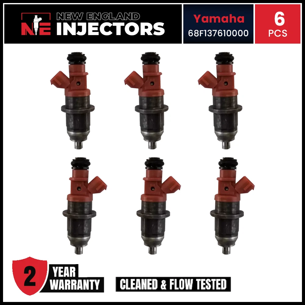 Remanufactured Yamaha 68F-13761-00-00 set of 6 fuel injector for 2000-2015 Yamaha 150 HP, 200 HP, HPDI. Professionally rebuilt to OEM specs using only genuine OEM injectors. Includes fast shipping and a 2-year warranty.