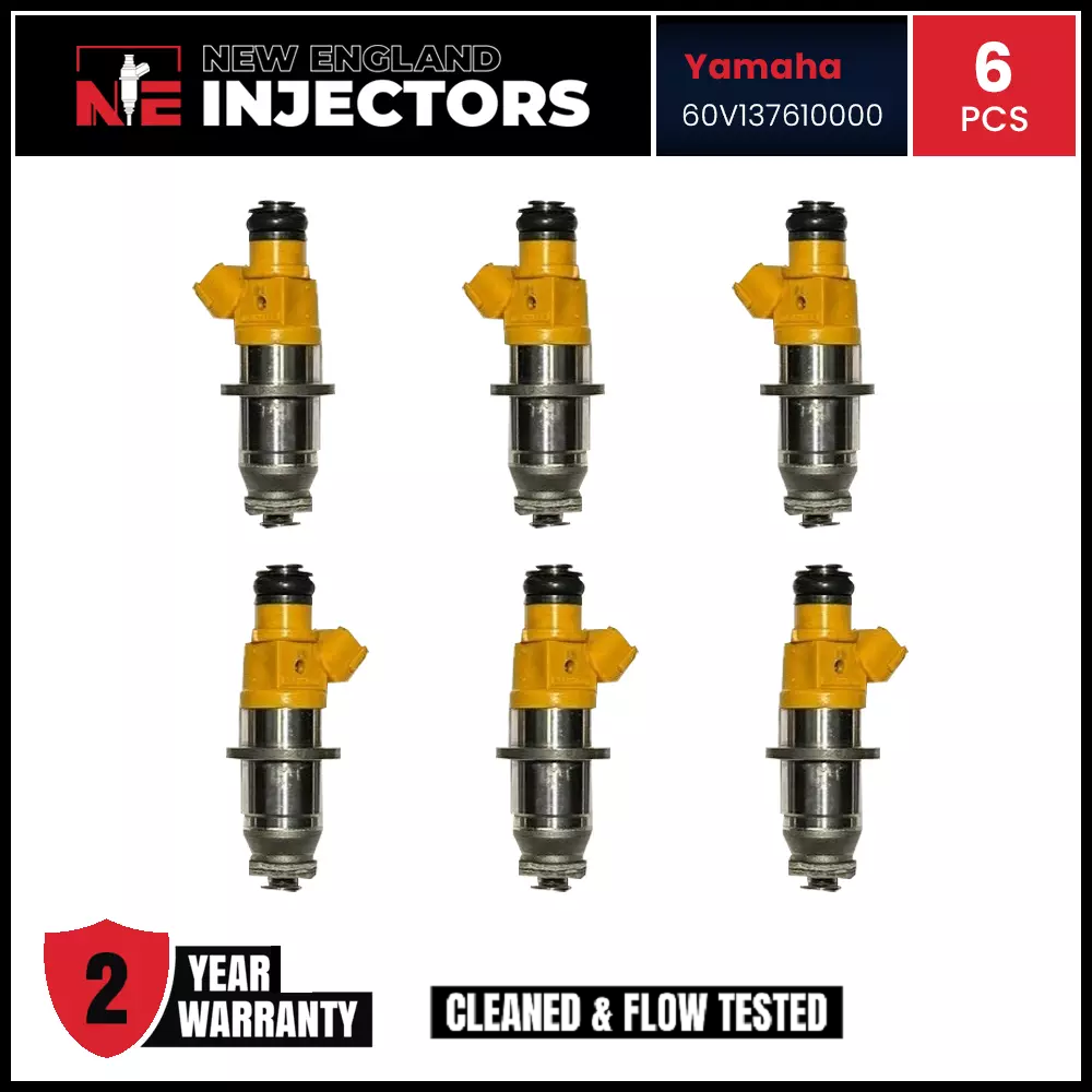 Remanufactured Yamaha 60V-13761-00-00 Set of 6 fuel Injectors for 2003-2009 Yamaha 200 HP, 300 HP. Professionally rebuilt to OEM specs using only genuine OEM injectors. Includes fast shipping and a 2-year warranty.
