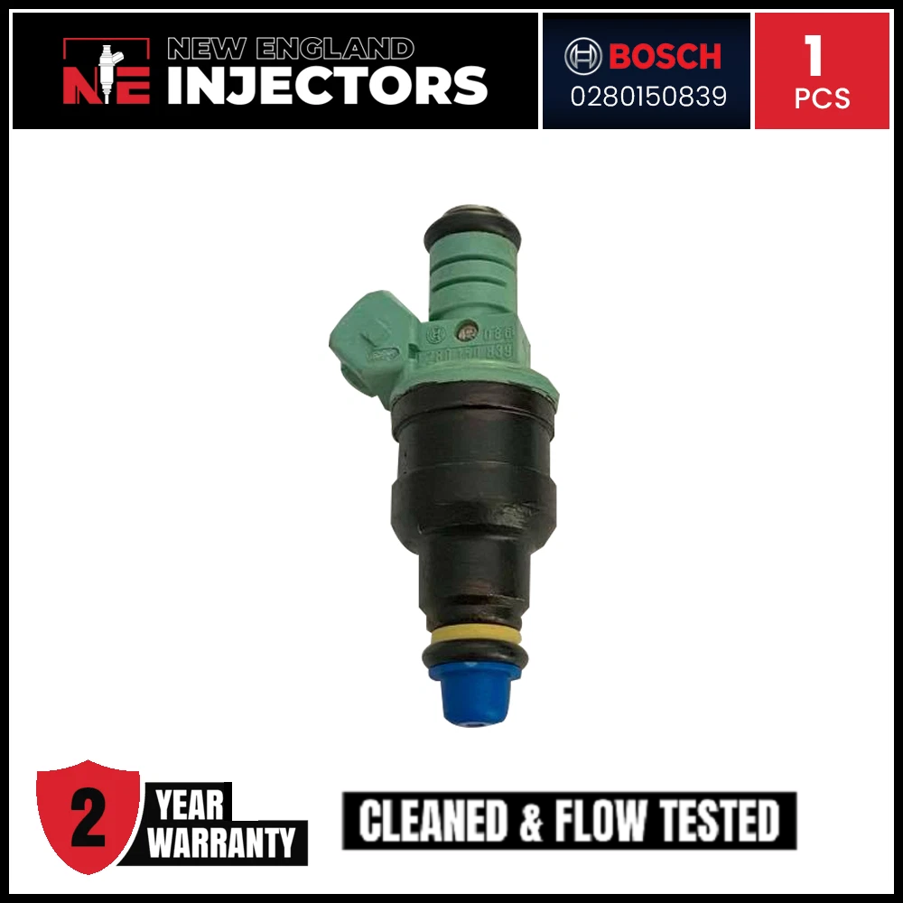 Remanufactured Bosch 0280150839 single fuel injector for 1996-2005 Ford Crown Victoria, E-250, E-350 Club Wagon, E-350 Super Duty, E-450 Super Duty, F-150 Heritage, F-150, F-250, Econoline Super Duty. Professionally rebuilt to OEM specs using only genuine OEM injectors. Includes fast shipping and a 2-year warranty.