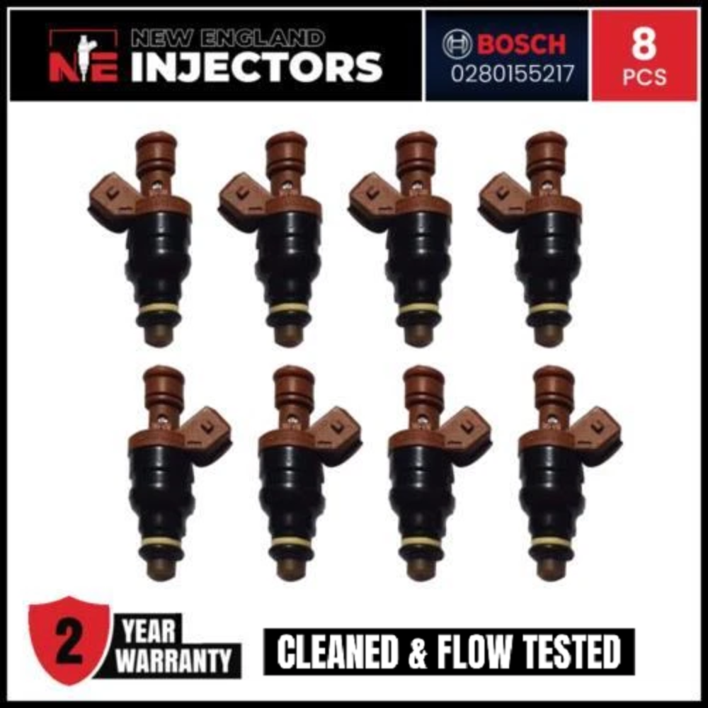 Remanufactured Bosch 0280155217 Set of 8 fuel Injectors for 1992-1995 Mercedes-Benz E420, S420, S500, SL500, E500, 400E, 400SEL, 500SEC, 500SL, 400SE, 500E, 500SEL. Professionally rebuilt to OEM specs using only genuine OEM injectors. Includes fast shipping and a 2-year warranty.