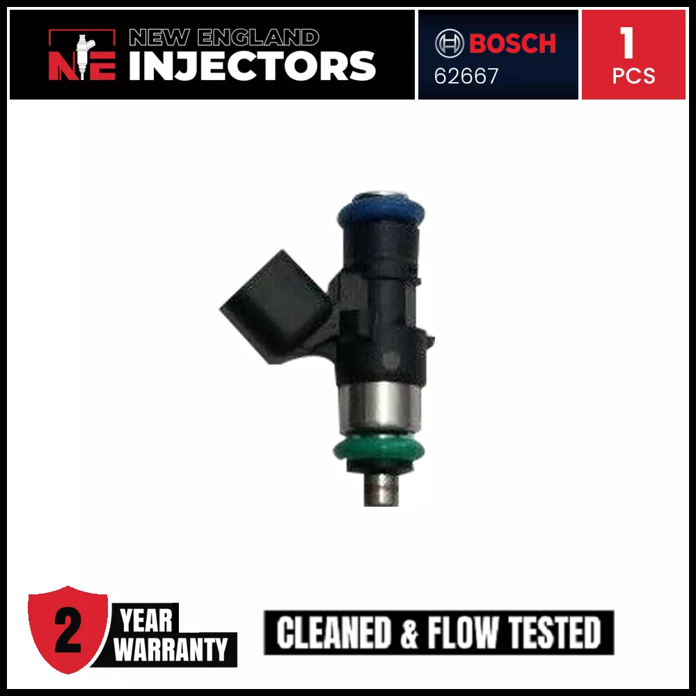 Remanufactured Bosch 62667 single fuel injector for 2011-2020 Lincoln Continental, MKX, MKS, MKZ; Ford Explorer, Flex, Edge, Taurus, F-150, Mustang, Transit-150, Transit-250, Transit-350, Transit-350 HD, Police Interceptor Sedan, Police Interceptor Utility. Professionally rebuilt to OEM specs using only genuine OEM injectors. Includes fast shipping and a 2-year warranty.
