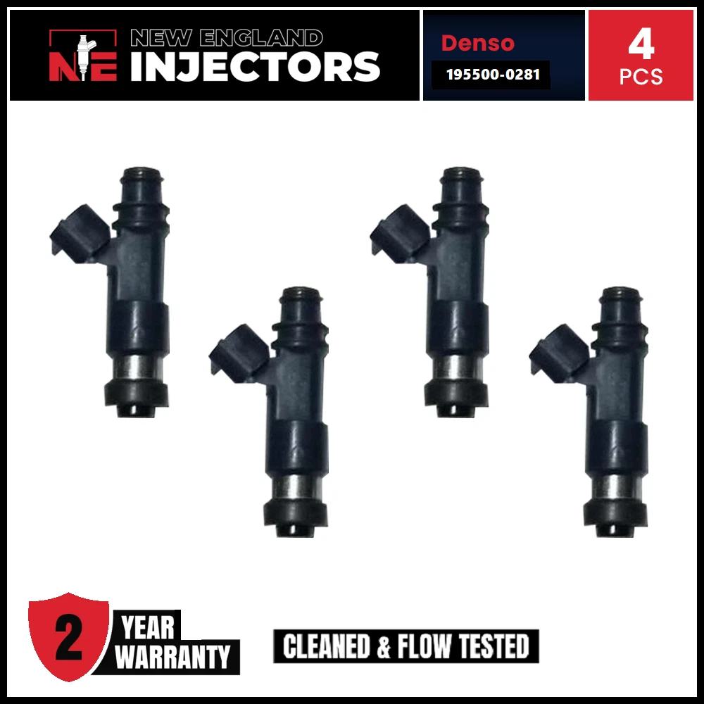 Remanufactured Denso 195500-0281 fuel Injector set of 4 for 2004-2012 Mitsubishi, Eclipse • Galant. Professionally rebuilt to OEM specs using only genuine OEM injectors. Includes fast shipping and a 2-year warranty