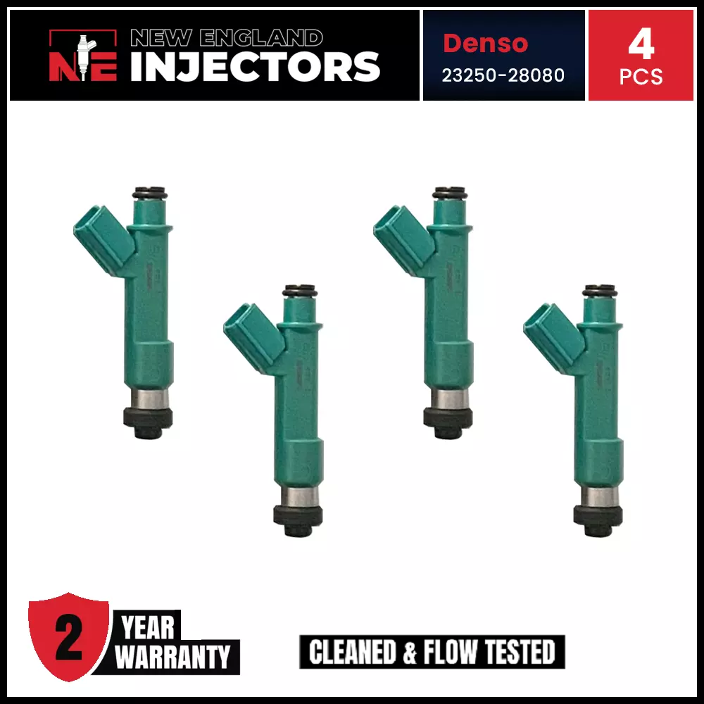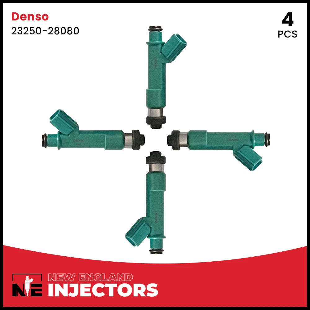 Remanufactured Denso 23250-28080 Fuel Injectors set (4) for 2004–2015 Toyota Scion xB, Matrix, tC, Camry, RAV4, Solara, Highlander. Professionally rebuilt to OEM specs using only genuine OEM injectors. Includes fast shipping and a 2-year warranty.
