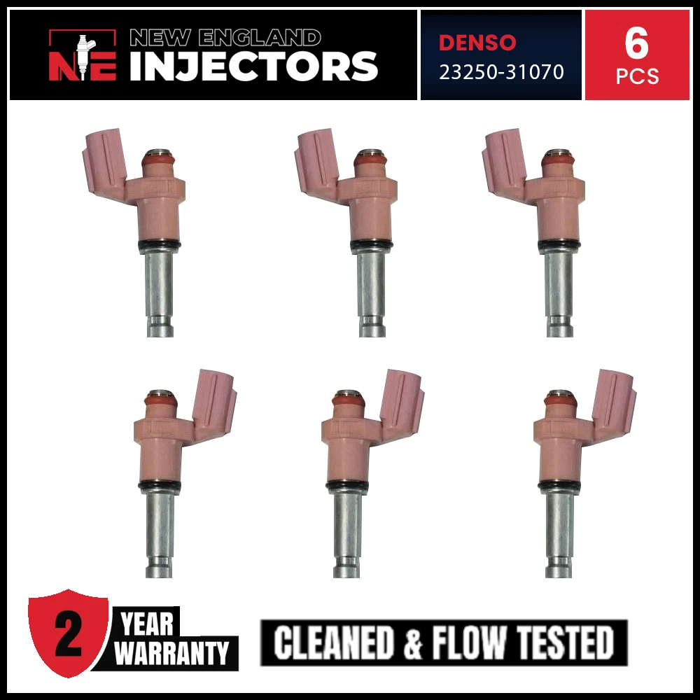 Remanufactured Denso 23250-31070 Set of 6 fuel Injectors for 2008-2014 Lexus IS300, IS350, RC300, RC350, GS350. Professionally rebuilt to OEM specs using only genuine OEM injectors. Includes fast shipping and a 2-year warranty.