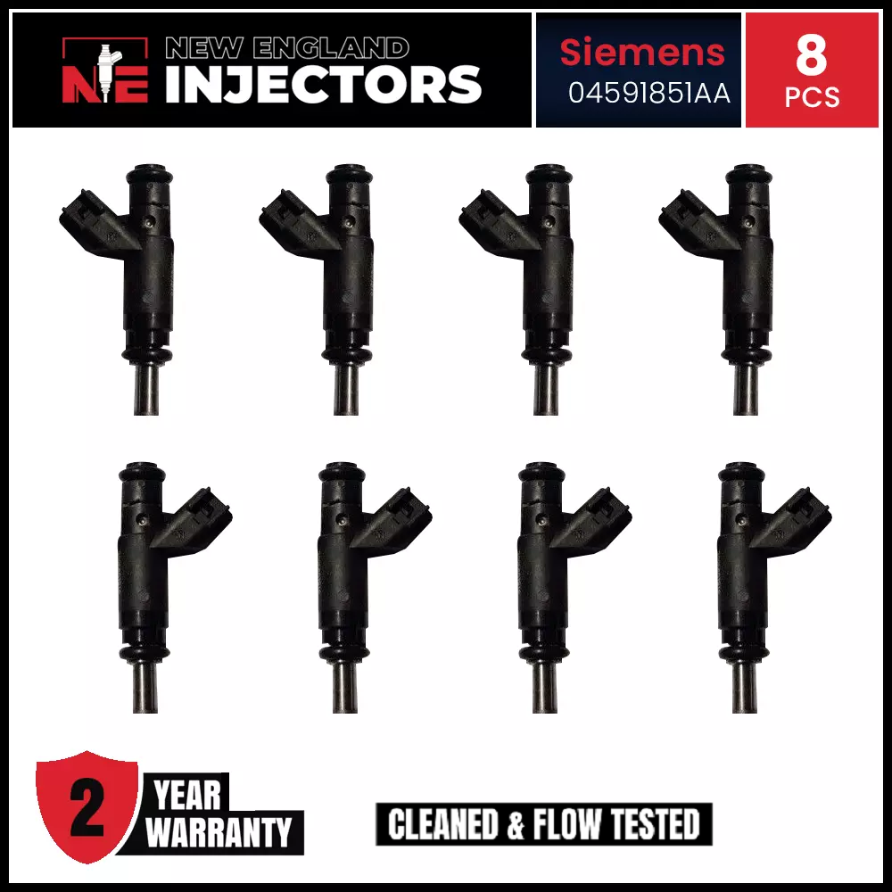 Remanufactured Siemens 04591851AA Fuel Injectors set (8) for 2005–2009 Chrysler 300; Jeep Grand Cherokee; Dodge Charger, Magnum. professionally rebuilt to OEM specs using only genuine OEM injectors. Includes fast shipping and a 2-year warranty.