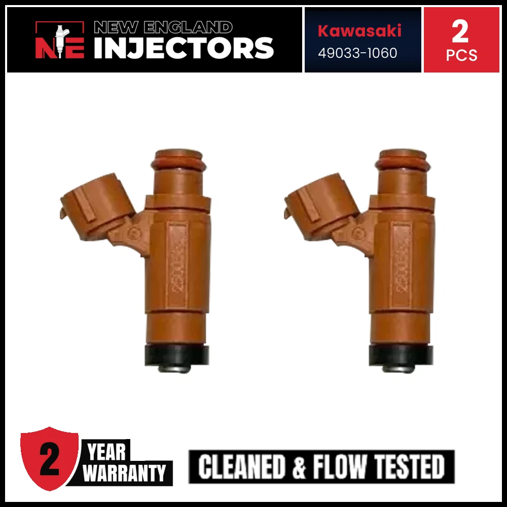 Remanufactured Kawasaki 49033-1060 Set of 2 fuel Injectors for 2009–2014 Kawasaki Brute Force 750, Teryx 750 Professionally rebuilt to OEM specs using only genuine OEM injectors. Includes fast shipping and a 2-year warranty.