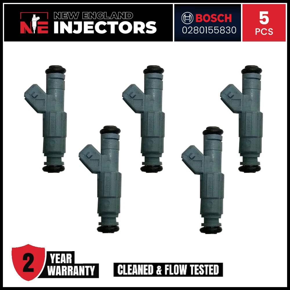 Remanufactured Bosch 0280155830 Fuel Injectors set (5) for 1999-2006 Volvo S80 C70 S60 V70 XC70. Professionally rebuilt to OEM specs using only genuine OEM injectors. Includes fast shipping and a 2-year warranty.