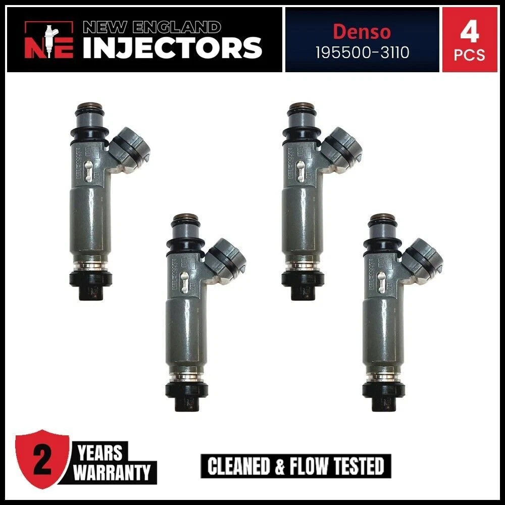 Remanufactured Denso 195500-3110 Fuel Injectors set (4) for 1997-2003 Mazda Protege Professionally rebuilt to OEM specs using only genuine OEM injectors. Includes fast shipping and a 2-year warranty.