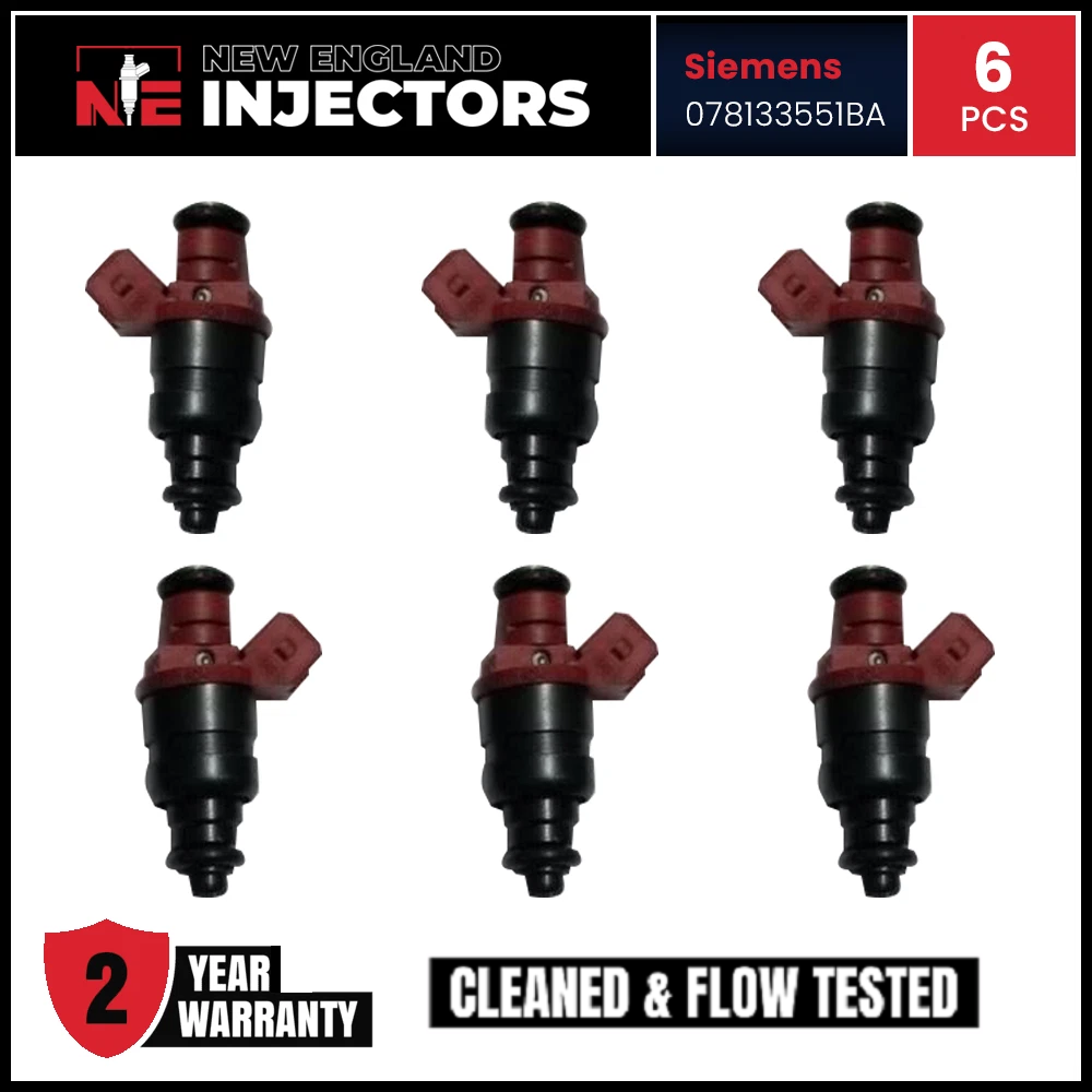 Remanufactured Siemens 078133551BA Fuel Injectors set (6) for 1998-2005 Volkswagen Passat 2.8L. Professionally rebuilt to OEM specs using only genuine OEM injectors. Includes fast shipping and a 2-year warranty.