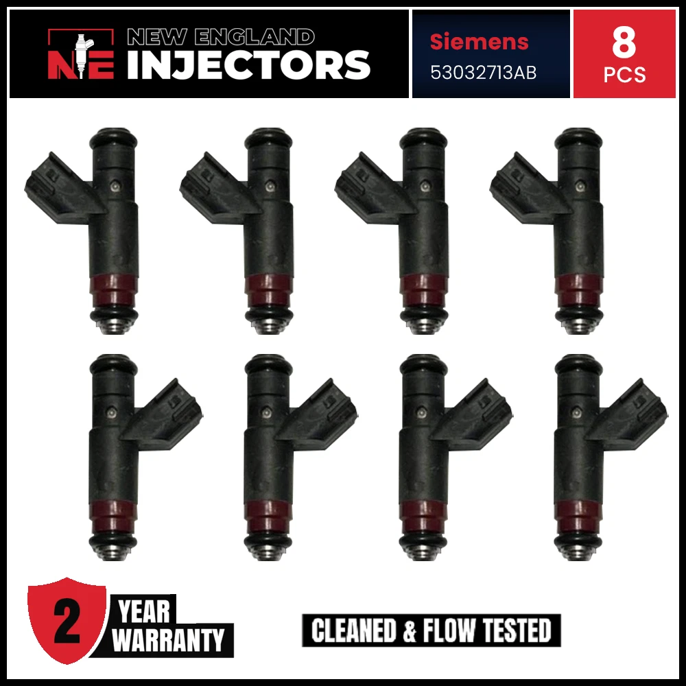 Remanufacture Siemens 53032713AB Fuel Injectors set (8) for 04-09 Dodge Durango Chrysler Aspen Ram 1500 Ram 2500 Ram 3500.Professionally rebuilt to OEM specs using only genuine OEM injectors. Includes fast shipping and a 2-year warranty.