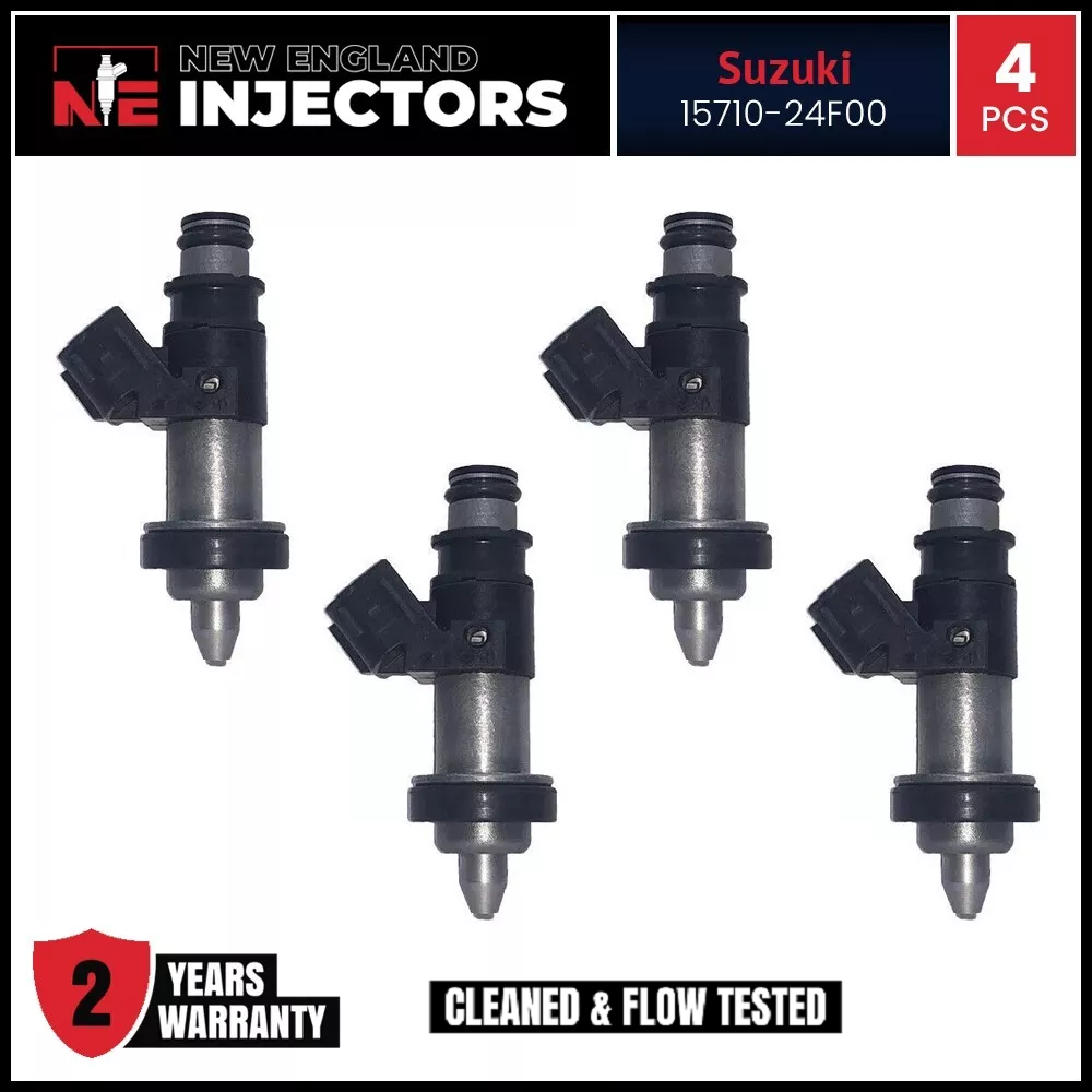 Remanufactured Suzuki 15710-24F00 Set of 4 fuel Injectors for 2000-2007 Suzuki GSXR600, GSXR750, GSXR1000, Hayabusa. Professionally rebuilt to OEM specs using only genuine OEM injectors. Includes fast shipping and a 2-year warranty.