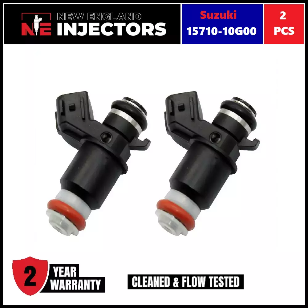 Remanufactured Suzuki 15710-10G00 Fuel Injectors set (2) for 01-09 Suzuki Boulevard • Burgman 400 • Burgman 650 • GSXR1000 • GSXR1000Z • Intruder 800 • Intruder Volusia 800. Professionally rebuilt to OEM specs using only genuine OEM injectors. Includes fast shipping and a 2-year warranty