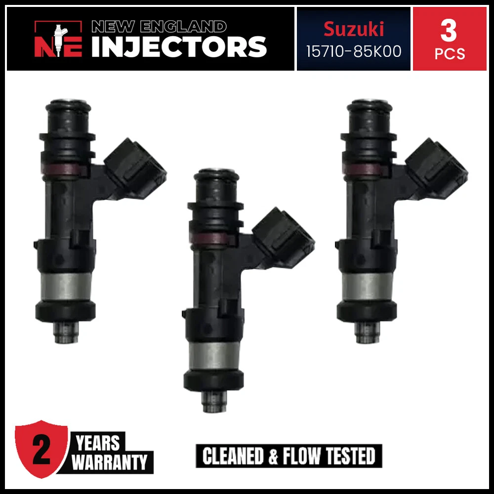 Remanufactured Suzuki 155710-85K00 Set of 3 fuel Injectors for 2011–2019 Suzuki DF40, DF50, DF60. Professionally rebuilt to OEM specs using only genuine OEM injectors. Includes fast shipping and a 2-year warranty.