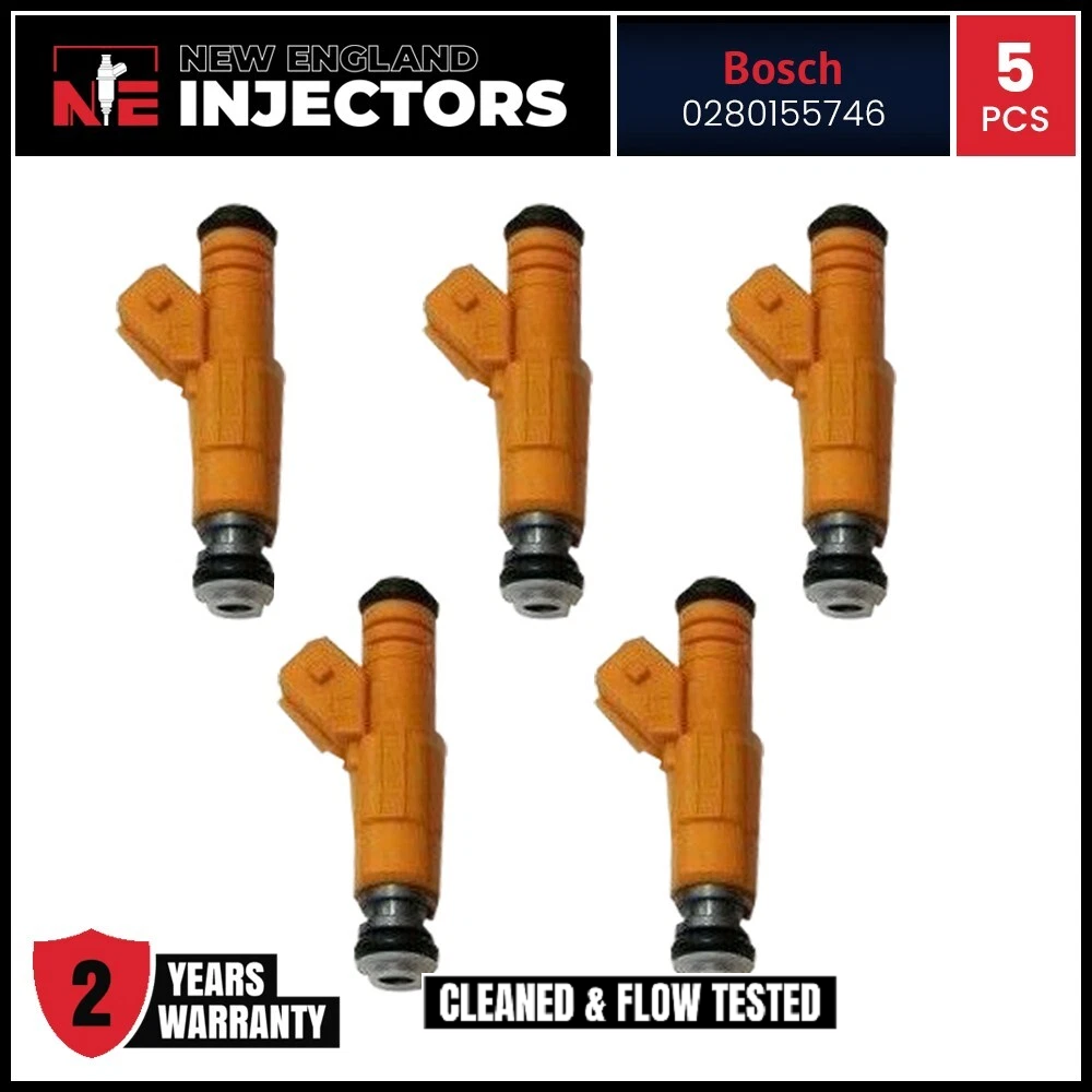 Remanufactured Bosch 0280155746 fuel Injector set of 5 for 1995-1998 Volvo, S70 • V70 • 850. Professionally rebuilt to OEM specs using only genuine OEM injectors. Includes fast shipping and a 2-year warranty